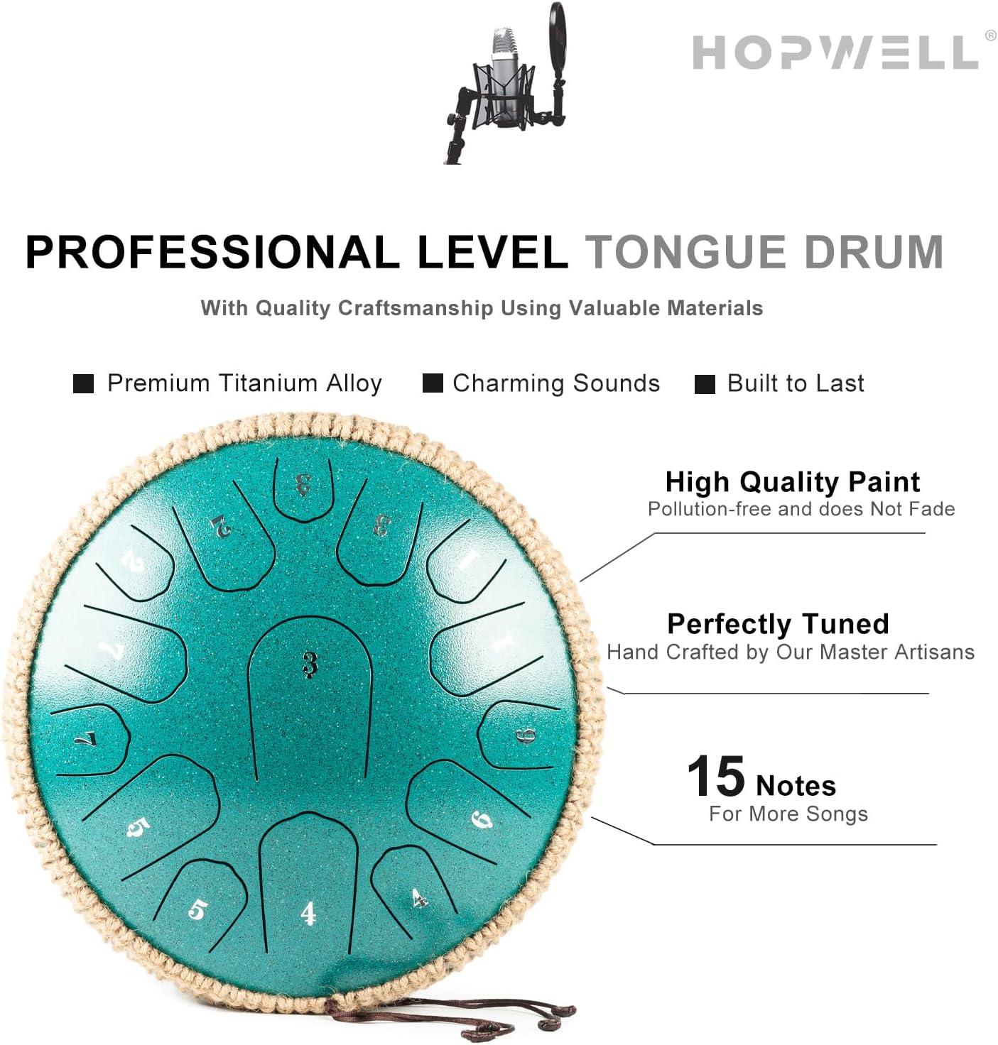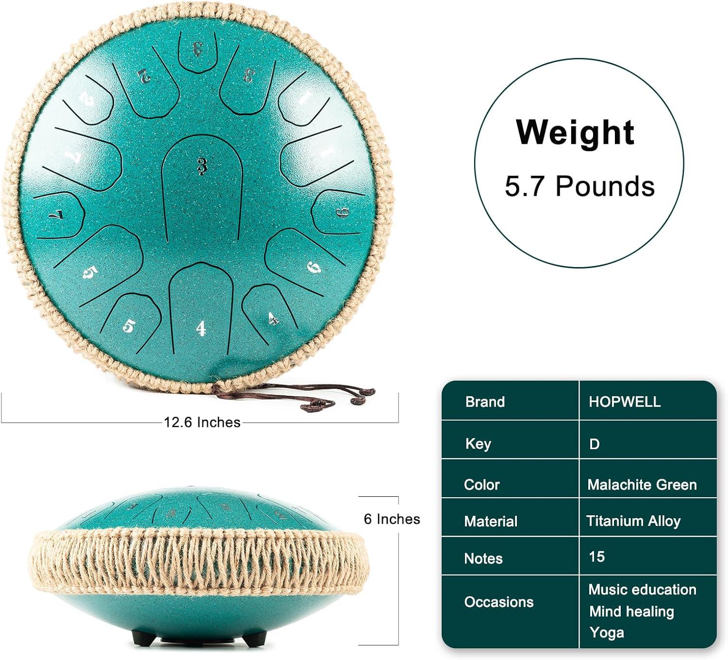 15 NOTE WIDER RANGE: 15 tones and D-key design allows you to play most complex songs. Hopwell steel tongue drum can meet professional performance needs and also beginner friendly. Having more notes matters, because it's easier to play a full song the more notes you have available to you. You will not regret your decision to go with this one!